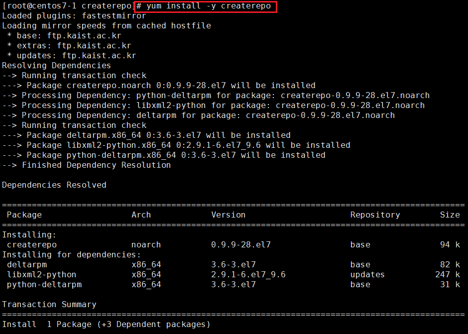 3.1.4. # yum install 명령어를 통해 createrepo 패키지를 다운로드합니다.