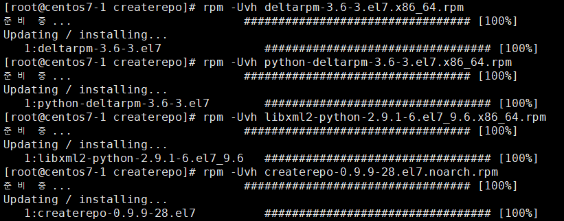 3.1.7. # createrepo --version 명령어로 패키지가 정상적으로 설치된 것을 확입합니다.