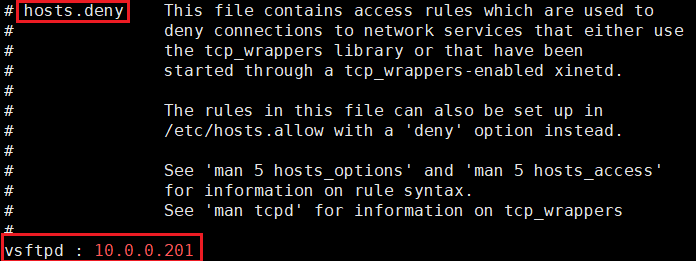 - hosts.deny에 설정된 IP Adrdess를 통해 FTP 서버로의 접근을 통제할 수 있음