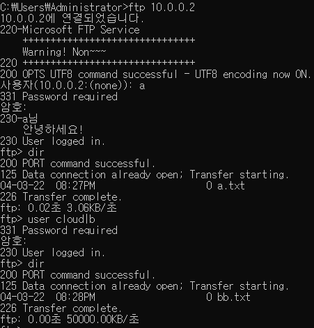 1.2.4.3. FTP 서버의 동작을 확인합니다.