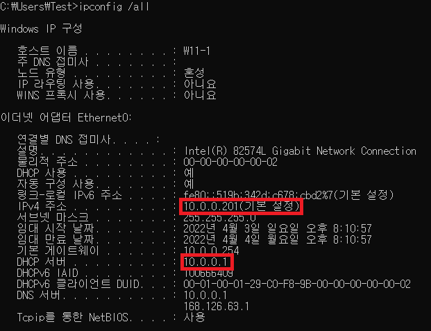 1.2.1. 보조 DHCP 서버 설정를 설정합니다.