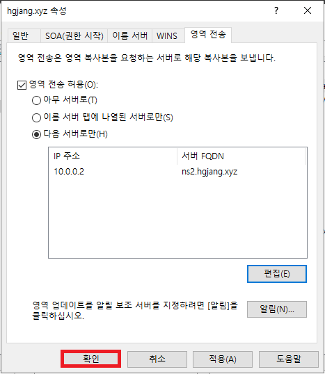 1.2.2. 보조 DNS를 생성합니다.(정방향 조회 영역)