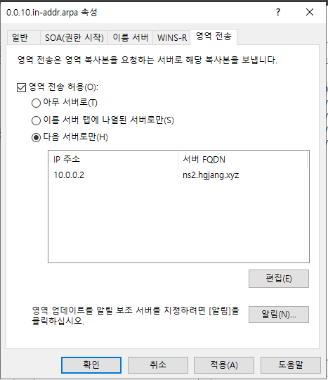 1.2.3. 보조 DNS에서 역방향 조회 영역을 생성합니다.