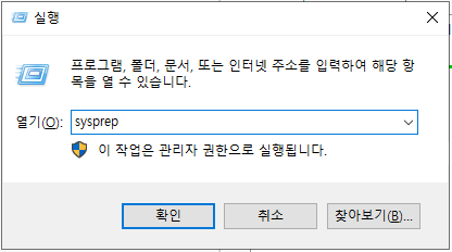 2.6.3. 실행 - sysprep을 입력하고 확인을 누릅니다.