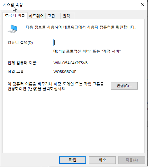 2.3.3. 컴퓨터 이름을 설정하고 확인을 누릅니다.