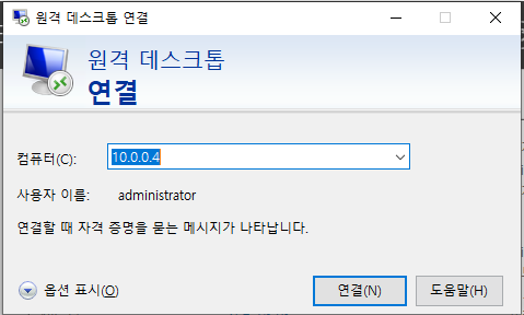 3.3. Host PC에서 실행 - mstsc를 통해 원격 데스크톱 연결을 시도합니다.