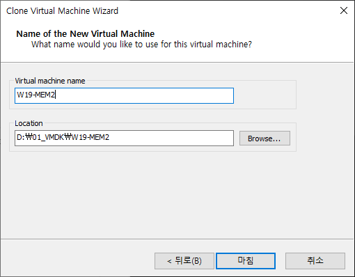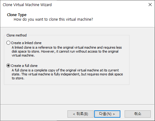 2.7.2. 아래와 같은 설정으로 복제를 시작합니다. 실제로 사용 할 3가지 이름의 Virtual Machine을 복제하여 생성합니다.